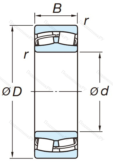 Сферический роликовый подшипник 22215 RZW33, представляет разновидность сферических роликоподшипников. В зависимости от типа может иметь один или два ряда тел качения в форме бочкообразных роликов. Однорядный имеет следующее конструктивное исполнение: массивная внешняя обойма, внутреннее кольцо, сепаратор, ролики. В зависимости от типа может иметь обоймы без бортов или с бортами. Является неразъёмным.