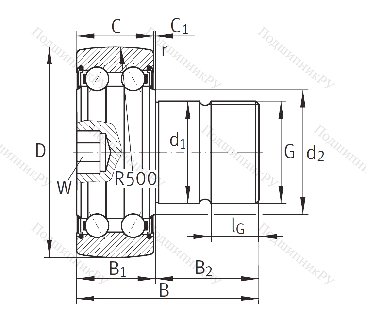 Конструкционное решение Подшипник KR 5201 2RS по многим пунктам совпадает с игольчатыми роликоподшипниками. Направляющие тела качения обладают безэксцентриковой втулкой. Внешнее кольцо – массивное, способное к восприятию высоких нагрузок радиальной направленности, включая ударные темпы службы, сопровождающиеся малыми изгибами и деформациями. Снаружи данное кольцо, в большинстве случаев, имеет форму конуса. Внутренняя шина отсутствует, а ее роль играет стержень с установочной винтовой резьбой, что в значительной степени упрощает и ускоряет процесс монтажа. На стержневой головке находится фланец с напрессованным кольцом.
