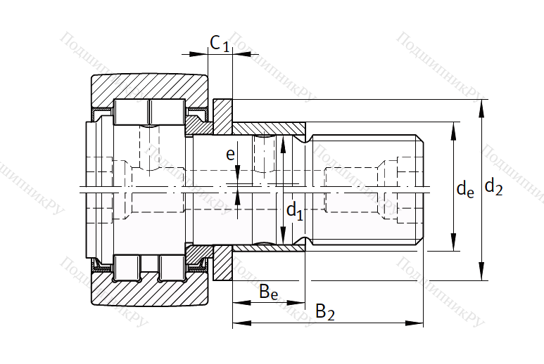 Подшипник PWKRE 62 2RS отличается наличием в конструкции резьбового хвостовика, утолщенной внешней шины, регулировочного эксцентрика и бортика, игольчатых роликов. Сепаратор отсутствует, а роль внутреннего кольца играет головка монтируемого стержня. Устройство поставляется исключительно в закрытом варианте и дополнительно уплотняется с обеих сторон.