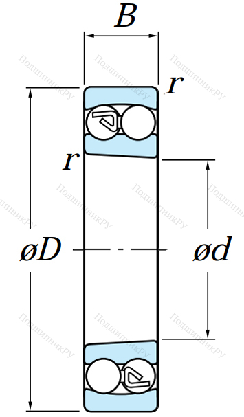 Конструкции этого типа, производящиеся фирмами FAG, KOYO, NSK, SKF, SNR, имеют два ряда шарикоподшипников, внешнюю выпуклую шину и внутреннюю обойму, в которой находится монтажное цилиндрическое отверстие. Воспринимают радиальные и осевые вектора приложения, включая двустороннюю нагрузку по оси (она не должна превышать 20% от лучевой).