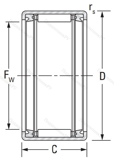 Игольчатый подшипник HK 2020 2RS имеет неразъемную конструкцию, в которую входят игольчатого вида тела качения и наружная штампованная шина. Как правило, является однорядным, без каналов для подачи смазочного материала.
