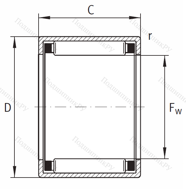 Игольчатый подшипник HK 2020 B 20x26x20 INA