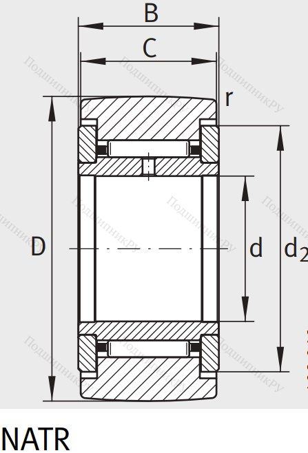 Игольчатый подшипник NATR 25 может комплектоваться двусторонними щелевыми уплотнениями, упорными пластмассовыми шайбами, иметь внутреннюю поверхность в форме цилиндра. Иглоролики находятся в утолщенной наружной обойме. Конструкция игольчатого шарикоподшипника является неразъемной и включает стальной высокопрочный сепаратор, а также боковые диски, установленные с двух сторон внешней шины.