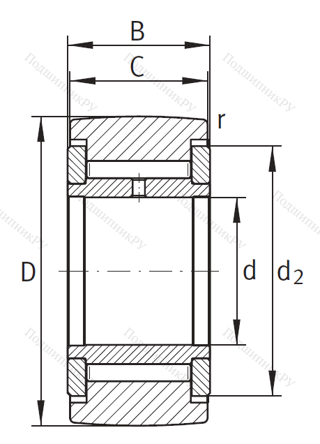 Игольчатый подшипник NATV 6 в своей неразъемной конструкции имеет иглоролики, находящиеся в наружной толстостенной обойме, и зафиксированные на внутреннем кольце боковые диски. Сепаратор может присутствовать либо отсутствовать: в первом случае повышается ударопрочность и скорость вращения, но снижается грузоподъемность, и наоборот.
