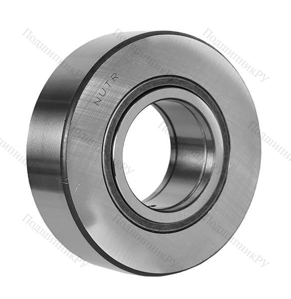 Игольчатый подшипник NUTR 2562 A относится к опорным роликам усиленной разновидности, в неразъемную конструкцию которых входит уплотненная наружная шина с размещенными в ней иглороликами и стальной сепаратор, устойчивый к повреждениям. Тела качения расположены в два ряда. По бокам внутренней обоймы находятся диски, фиксирующие данное устройство, а на поверхности располагается специальное отверстие для подачи смазочного материала.