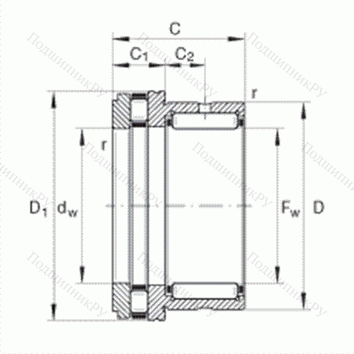 Подшипник комбинированный с короткими цилиндрическими и игольчатыми роликами NKXR 40