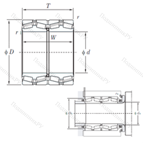 Подшипник роликовый радиально-упорный 47230 у которого конструкционной особенностью являются ролики в форме конуса и разъемный корпус. Изделие также может быть укомплектовано наружным кольцом с упорным бортиком или большим углом, двухрядными или четырехрядными роликоподшипниками, утолщенной внешней шиной.