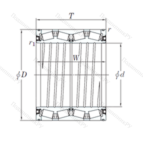 Подшипник роликовый радиально-упорный 47TS724838A у которого конструкционной особенностью являются ролики в форме конуса и разъемный корпус. Изделие также может быть укомплектовано наружным кольцом с упорным бортиком или большим углом, двухрядными или четырехрядными роликоподшипниками, утолщенной внешней шиной.