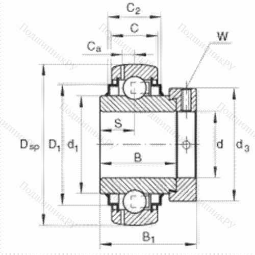 сферическое наружное кольцо, фиксация эксцентриковым закрепительным кольцом, двусторонние R-уплотнения