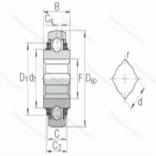 сферическое наружное кольцо, внутреннее кольцо с квадратным отверстием, двусторонние R-уплотнения