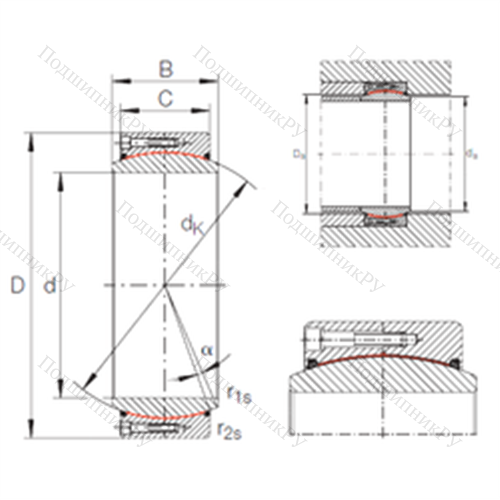 Подшипник скольжения сферический GE 530 DW-2RS2 конструкция которого представлена внешним кольцом, внутри вращается внутренняя обойма. Существуют прямые, шарнирные (самовыравнивающиеся), угловые, гидравлические, двойные шарикоподшипниковые и роликоподшипниковые варианты исполнения. Отдельные разновидности изделий (с парой трения «сталь – сталь») нуждаются в обслуживании и имеют каналы для подачи смазки, в то время как другие не нуждаются в ТО. В первом случает система включает в себя пару стальных шин, обработанную предварительно фосфатами и дисульфитом молибдена. Необслуживаемые модели покрываются политетрафторэтиленом, армируются медью и дополнительно усиливаются хромом.