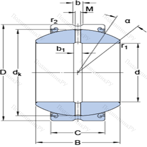 Радиальные сферические подшипники скольжения с контактными поверхностями сталь/сталь, требующие техобслуживания GEH 20 ESX-2LS конструкция которого представлена внешним кольцом, внутри вращается внутренняя обойма. Существуют прямые, шарнирные (самовыравнивающиеся), угловые, гидравлические, двойные шарикоподшипниковые и роликоподшипниковые варианты исполнения. Отдельные разновидности изделий (с парой трения «сталь – сталь») нуждаются в обслуживании и имеют каналы для подачи смазки, в то время как другие не нуждаются в ТО. В первом случает система включает в себя пару стальных шин, обработанную предварительно фосфатами и дисульфитом молибдена. Необслуживаемые модели покрываются политетрафторэтиленом, армируются медью и дополнительно усиливаются хромом.