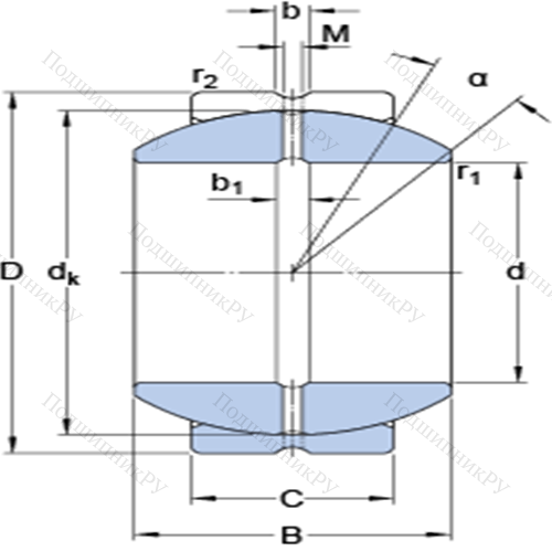 Радиальные сферические подшипники скольжения с контактными поверхностями сталь/сталь, требующие техобслуживания GEZH 308 ES