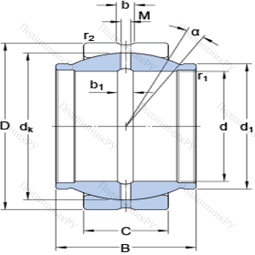 Радиальные сферические подшипники скольжения с контактными поверхностями сталь/сталь, требующие техобслуживания GEZM 308 ES