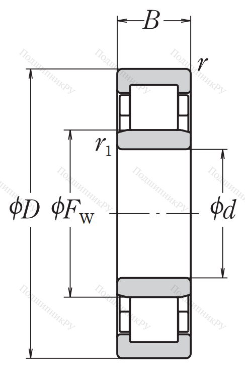 Роликовый цилиндрический подшипник NU 310 ET, это разновидность однорядного роликоподшипника в метрическом исполнении.