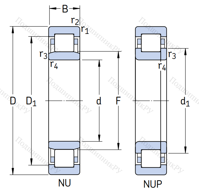 - цилиндрических роликовых тел качения;