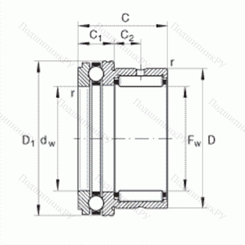 Шарикоподшипник упорный комбинированный с игольчатыми роликами NKX 20
