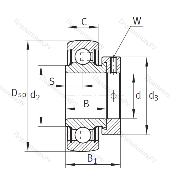 - Устанавливается на валах разного диаметра и порой требует дополнительных фиксирующих элементов (например, это может быть закрепительное эксцентриковое кольцо, резьбовый штифт, поводковый паз, втулки).