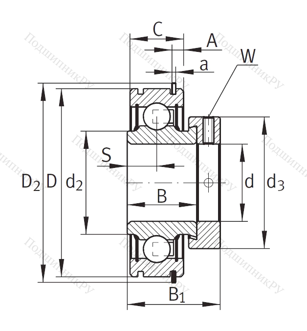 - Устанавливается на валах разного диаметра и порой требует дополнительных фиксирующих элементов (например, это может быть закрепительное эксцентриковое кольцо, резьбовый штифт, поводковый паз, втулки).