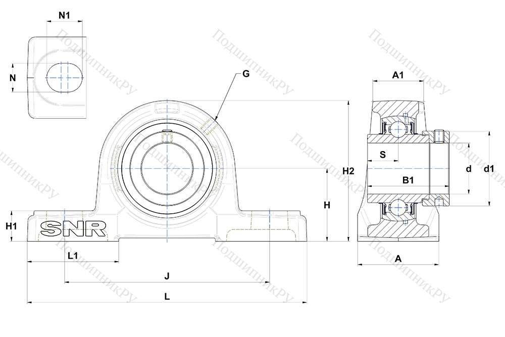 Модель имеет закрытый чугунный корпус с двойным уплотнением (иногда может поставляться под заказ с тройной кромкой), предназначенный для монтажа на горизонтальных поверхностях опор через специально отведенные отверстия. Телом качения выступает аксиальный однорядный подшипник EX-типа, внешняя шина которого выполнена в форме сферы.