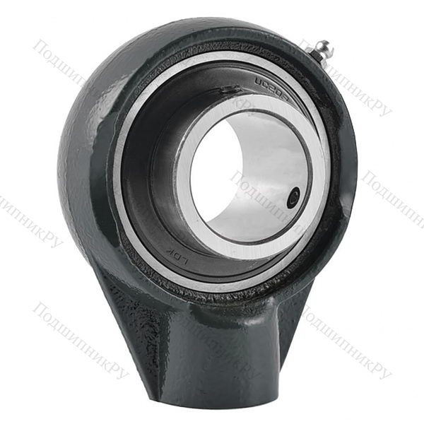 Изделия прикрепляются непосредственно к ножке, оснащенной резьбой, «вверх тормашками» и фиксируются на опорных вертикальных или горизонтальных поверхностях при помощи крепежных болтов. Головка оснащена гнездом для тела качения UC-типа – однорядного аксиального шарикоподшипника, прикрученного к валу при помощи пары винтов, для которых в расширенном внутреннем кольце имеются отверстия. Предусмотрена установка элементов разновидности UK с использованием закрепительной втулки.