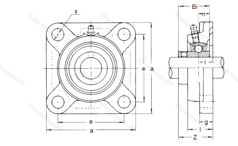 Внешнее кольцо имеет сферическую форму, поэтому установка изделия происходить при помощи специальных посадочных элементов. Таким образом, деталь может менять свое положение в пространстве относительно стального или чугунного корпуса, что дает возможность компенсировать несоосность.