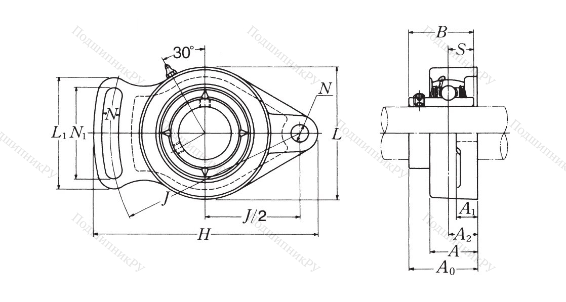 Наружная поверхность конструкции имеет сферическую форму, внутри которой удерживается однорядный радиальный шариковый подшипник. Внутреннее кольцо – расширенное, с дополнительными уплотнениями и винтом для установки.