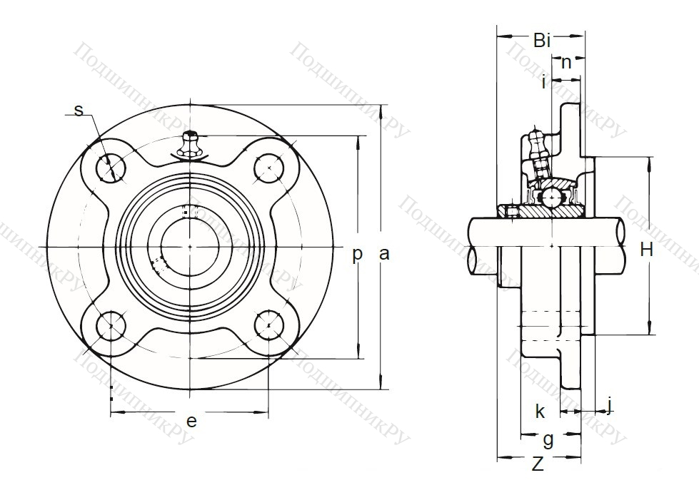 Фланцевая гильза из чугуна или стали оснащена корпусным радиальным шарикоподшипником UC-серии, имеющим внутреннюю обойму удлиненного вида и винтовой стопорной крепеж. Монтаж детали осуществляется методом подгонки.