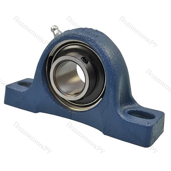 В конструкцию детали входит корпусный подшипник типа UC, установленный в корпус типа Р из чугуна с нишей сферической формы. Монтаж на вал осуществляется посредству кольца, оснащенного парой штифтов, закручиваемых шестигранником, что обеспечивает самовыравнивание.