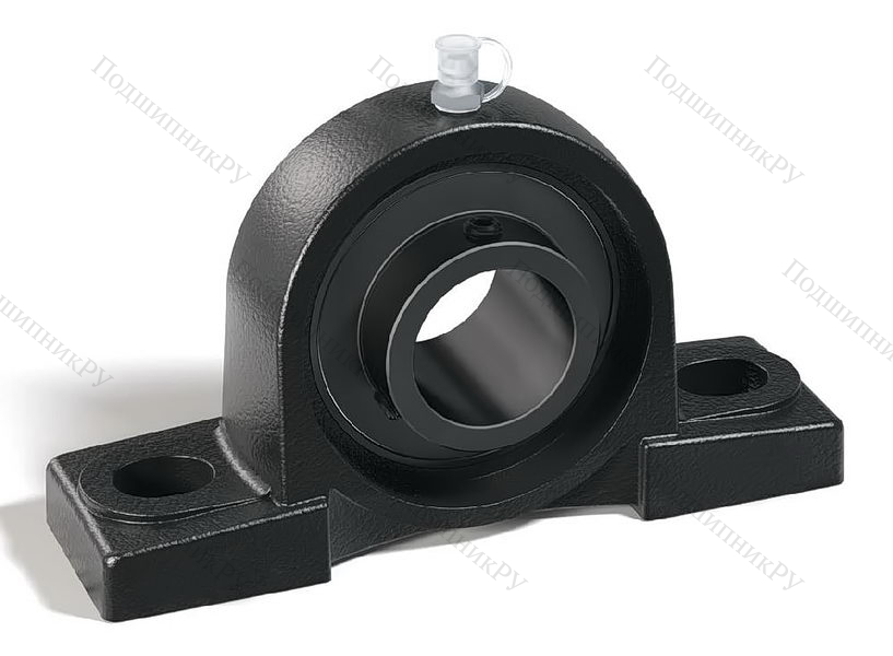 В конструкцию детали входит корпусный подшипник типа UC, установленный в корпус типа Р из чугуна с нишей сферической формы. Монтаж на вал осуществляется посредству кольца, оснащенного парой штифтов, закручиваемых шестигранником, что обеспечивает самовыравнивание.