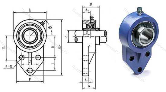 Подшипниковый узел UCFB204 представляет одну из разновидностей подшипниковых узлов в сборе. Состоит из корпуса с кронштейном, имеющим форму равнобедренного треугольника, в котором имеется три отверстия под установочные болты, и встраиваемого подшипника различных типов в варианте исполнения Y.