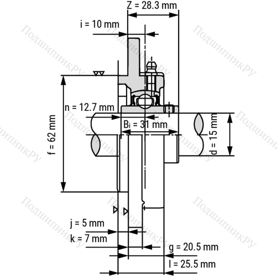 - состоит из вкладыша шарикоподшипника UC 202 и чугунного корпуса FC 204