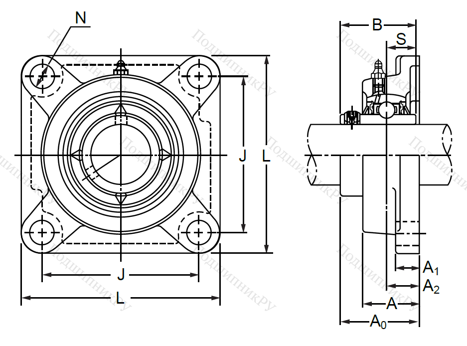 Деталь представляет собой фланцевый корпус из литой стали или серого чугуна, обладающий повышенной прочностью и стойкостью не только к износу, но и к механическому воздействию. Устройство прикрепляется к основе при помощи четырех винтов, для которых в нем имеются специальные отверстия. Имеет сферическую внутреннюю часть для установки подшипника.