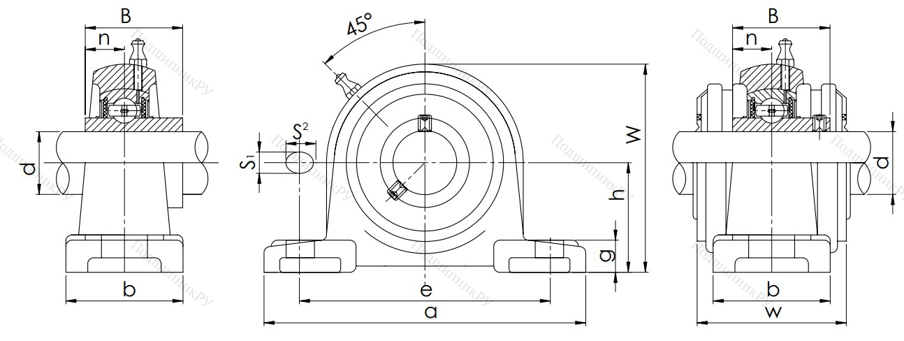 Деталь «на лапах» эксплуатируется в качестве основы для подшипника и способна компенсировать перекосы при монтаже на вал (для этого необходима установка пары такого типа устройств). Корпус конструкции отливается из серого чугуна, изготавливается из термопластика или нержавеющей стали. Присутствует наружная обойма в форме сферы.
