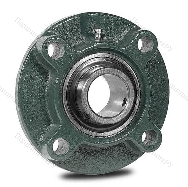 Фланцевая гильза из чугуна или стали оснащена корпусным радиальным шарикоподшипником UC-серии, имеющим внутреннюю обойму удлиненного вида и винтовой стопорной крепеж. Монтаж детали осуществляется методом подгонки.