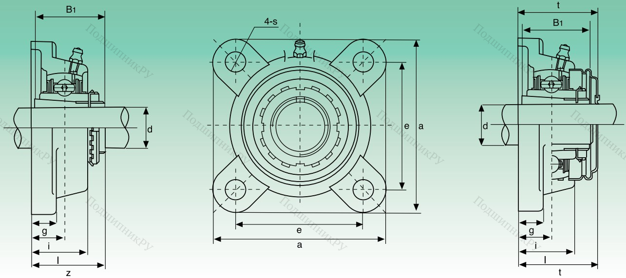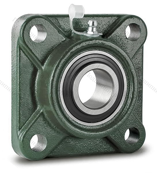 Данная шарикоподшипниковая серия оснащена квадратным чугунным, каучуковым или прессованным стальным фланцем, корпусом F-серии и подшипником UK-типа с закрепительной втулкой разновидности H.