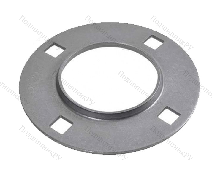 Подшипниковый фланцевый узел, состоящий из двух половин одинаковой формы, включающих три отверстия и изготовленных из штампованной стали толщиной примерно 2 мм. Может размещать в себе однорядные шарикоподшипники типа Y (SB, UC, SA, YAR, HC и другие). Наружная шина – сферической формы, за счет чего происходит самоцентрация, то есть компенсация несоосности и прочих дефектов установки.