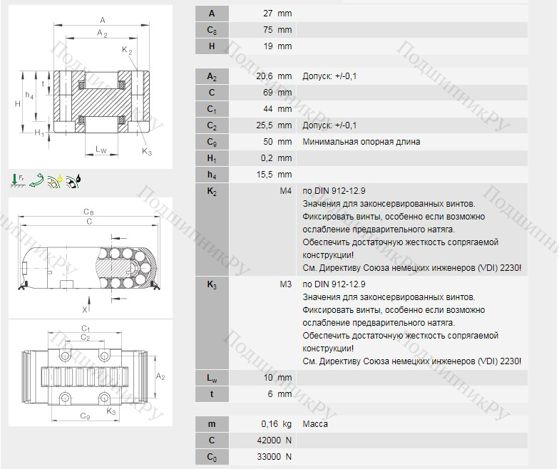 Роликовая линейная опора качения RUS 19069-GR 3/-10-15 (INA)