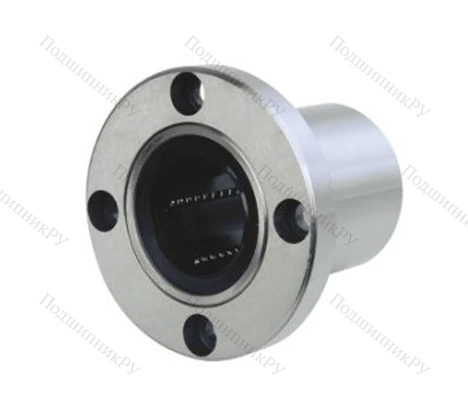 Линейный подшипниковый узел, оснащенный внешним цилиндром из стали. Имеет закрытую конструкцию и может использоваться с валом цилиндрической формы. Торец устройства оборудован круглым фланцем с четырьмя отверстиями. Может иметь уплотнения как с одной, так и с двух сторон, для препятствования загрязнениям.